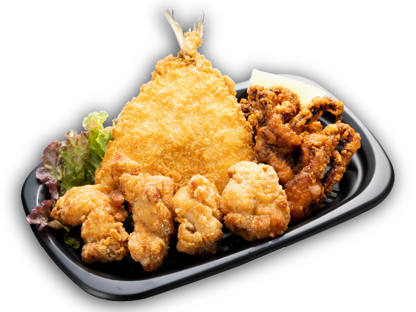 - アジフライ、鶏の唐揚げ、げその唐揚げ