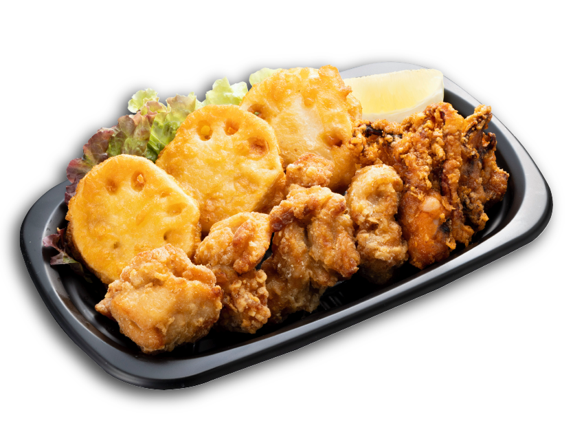 - 鶏の唐揚げ、げその唐揚げ、海鮮蓮根はさみ揚げ