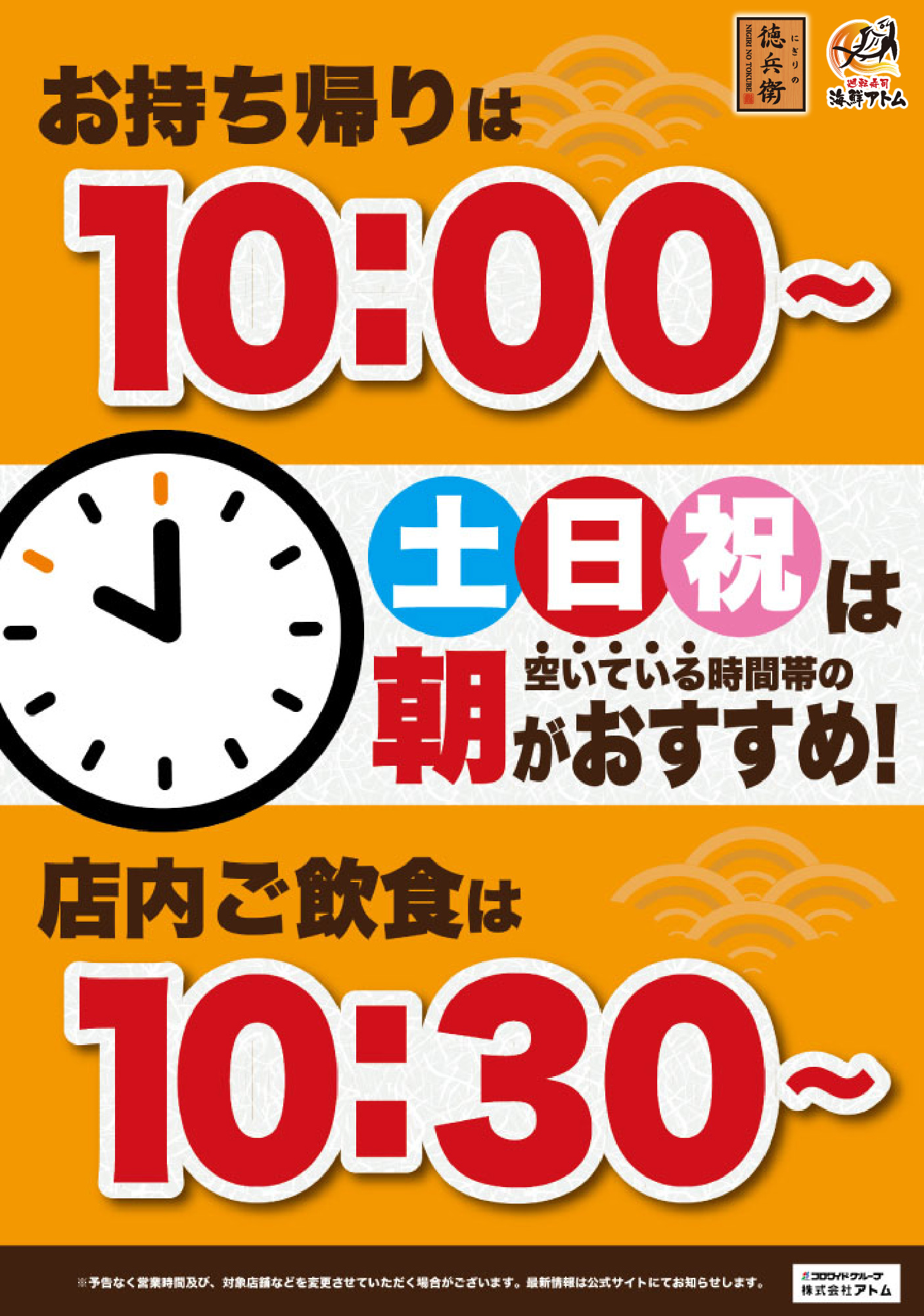 ※にぎりの徳兵衛富田店、天王店、扶桑店、関店、桑名店、今伊勢店、稲沢店では実施しておりません。
