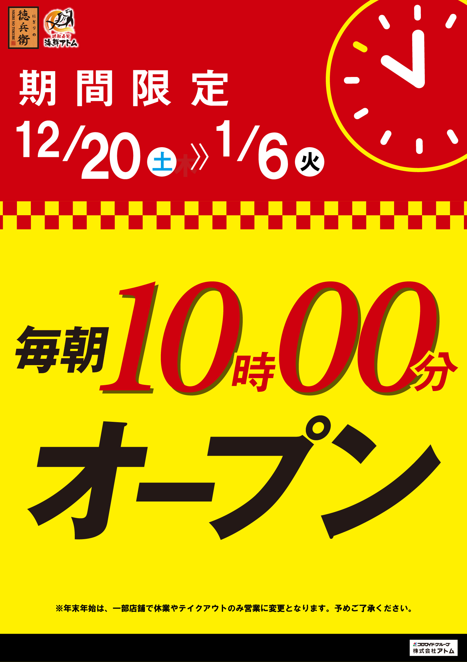12月20日(土)~2026年1月6日(火)までの期間限定で、毎朝10時00分にオープンします!