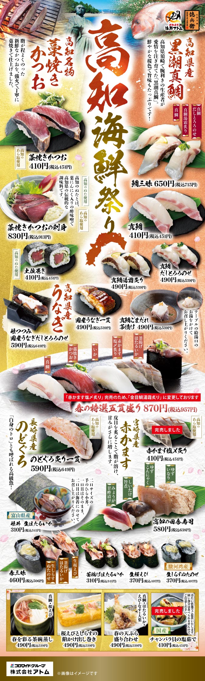 3月3日より、高知県の海鮮や特産物、さらに春に旬を迎えるネタが大集合!