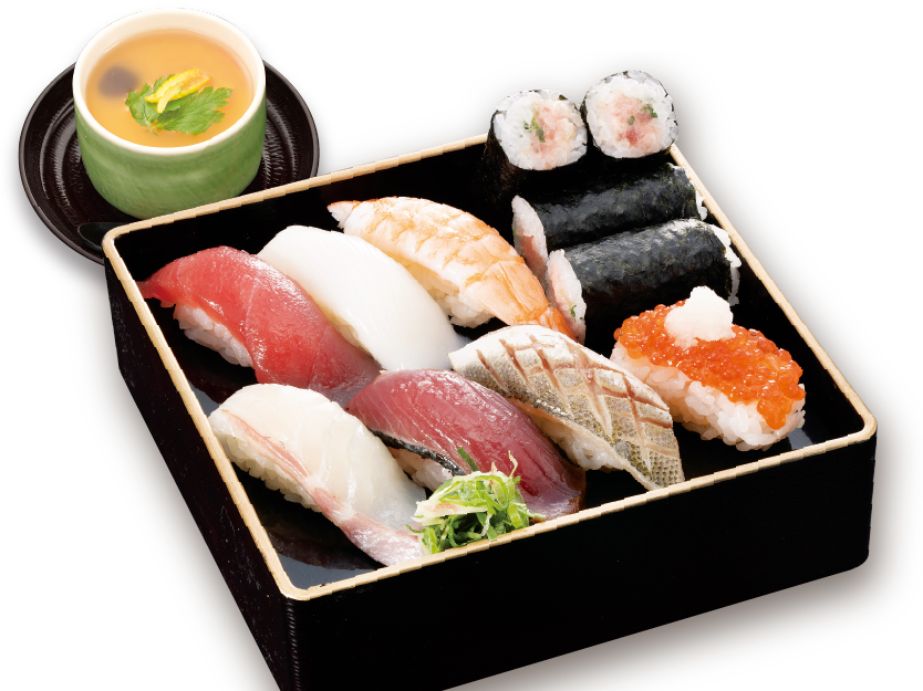 ランチメニュー ランチメニューメニュー海鮮アトムTOP オープンから午後5時まで【土曜日は午後4時まで】ご利用いただけます。 平日・土曜(日・祝除く)※敦賀若葉店は平日のみ さらにランチタイムは『日替わり味噌汁』はセルフサービスにてご提供! アツアツを何杯でもお召し上がりいただけます♪ ※一部店舗では内容、価格、盛り付け、器が異なる場合がございます。 ※一部店舗では、販売曜日、時間が詳異なります。詳細は店舗までお問い合わせください。 ※大型連休、年末年始等はランチメニューをお休みさせていただく場合がございます。 【ランチ】季節のにぎり 1,793円(税込) まぐろ・いか・蒸しえび・ネギとろ巻き・真鯛・藁焼きかつお・赤かます塩〆炙り(もしくは金目鯛湯霜炙り)・すじこ 【ランチ】まぐろ三色丼 1,628円(税込) 本まぐろ赤身・まぐろ・びんちょうまぐろ・ネギとろ・漬物小鉢・茶碗蒸し 【ランチ】極上にぎり 2,508円(税込) 本まぐろ赤身・いか・ぼたん海老・かに・本まぐろ中とろ・金目鯛炙り・数の子・活〆煮穴子・うにいくら・茶碗蒸し 【ランチ】賑わい海鮮丼 1,298円(税込) まぐろ・はまち(ぶり)・サーモン・いか・ネギとろ・玉子・蒸しえび・漬物小鉢・茶碗蒸し 【ランチ】日替りにぎり 1,408円(税込) まぐろ・いか・蒸しえび・こはだ・とろサーモン・煮穴子・赤えび・本日のおすすめにぎり・本日の軍艦・茶碗蒸し 【ランチ】寿司そばランチ 1,243円(税込) まぐろ・いか・玉子・サーモン・たこ・本日の貝・カニ風味サラダ・いなり・おろしそば・漬物小鉢 「おろしそば(冷)」は「きつねうどん(温)」に変更できます。そば(うどん)は1玉です。 【ランチ】満足にぎり 1,419円(税込) 鉄火巻き・かっぱ巻き・まぐろ・いか・蒸しえび・カニ風味サラダ・本日の貝・いなり・玉子・漬物小鉢・日替りデザート・茶碗蒸し メニュー一覧へ戻る