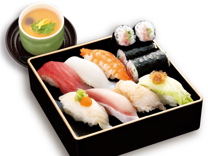 ランチメニュー ランチメニューメニュー海鮮アトムTOP オープンから午後5時まで【土曜日は午後4時まで】ご利用いただけます。 平日・土曜(日・祝除く)※敦賀若葉店は平日のみ さらにランチタイムは『日替わり味噌汁』はセルフサービスにてご提供! アツアツを何杯でもお召し上がりいただけます♪ ※一部店舗では内容、価格、盛り付け、器が異なる場合がございます。 ※一部店舗では、販売曜日、時間が詳異なります。詳細は店舗までお問い合わせください。 ※大型連休、年末年始等はランチメニューをお休みさせていただく場合がございます。 【ランチ】季節のにぎり 1,716円(税込) まぐろ・いか・蒸しえび・ネギとろ巻き・ナメタガレイ・ぶり・ホッキ貝炙り・白菜漬け・茶碗蒸し 【ランチ】極上にぎり 2,508円(税込) 本まぐろ赤身・いか・ぼたん海老・かに・本まぐろ中とろ・金目鯛炙り・数の子・活〆煮穴子・うにいくら・茶碗蒸し 【ランチ】日替りにぎり 1,408円(税込) まぐろ・いか・蒸しえび・こはだ・とろサーモン・煮穴子・赤えび・本日のおすすめにぎり・本日の軍艦・茶碗蒸し 【ランチ】寿司そばランチ 1,188円(税込) まぐろ・いか・玉子・サーモン・たこ・本日の貝・カニ風味サラダ・いなり・おろしそば・漬物小鉢 「おろしそば(冷)」は「きつねうどん(温)」に変更できます。そば(うどん)は1玉です。 【ランチ】まぐろ三色丼 1,518円(税込) 本まぐろ赤身・まぐろ・びんちょうまぐろ・ネギとろ・漬物小鉢・茶碗蒸し 【ランチ】賑わい海鮮丼 1,188円(税込) まぐろ・はまち(ぶり)・サーモン・いか・ネギとろ・玉子・蒸しえび・漬物小鉢・茶碗蒸し 【ランチ】満足にぎり 1,419円(税込) 鉄火巻き・かっぱ巻き・まぐろ・いか・蒸しえび・カニ風味サラダ・本日の貝・いなり・玉子・漬物小鉢・日替りデザート・茶碗蒸し メニュー一覧へ戻る